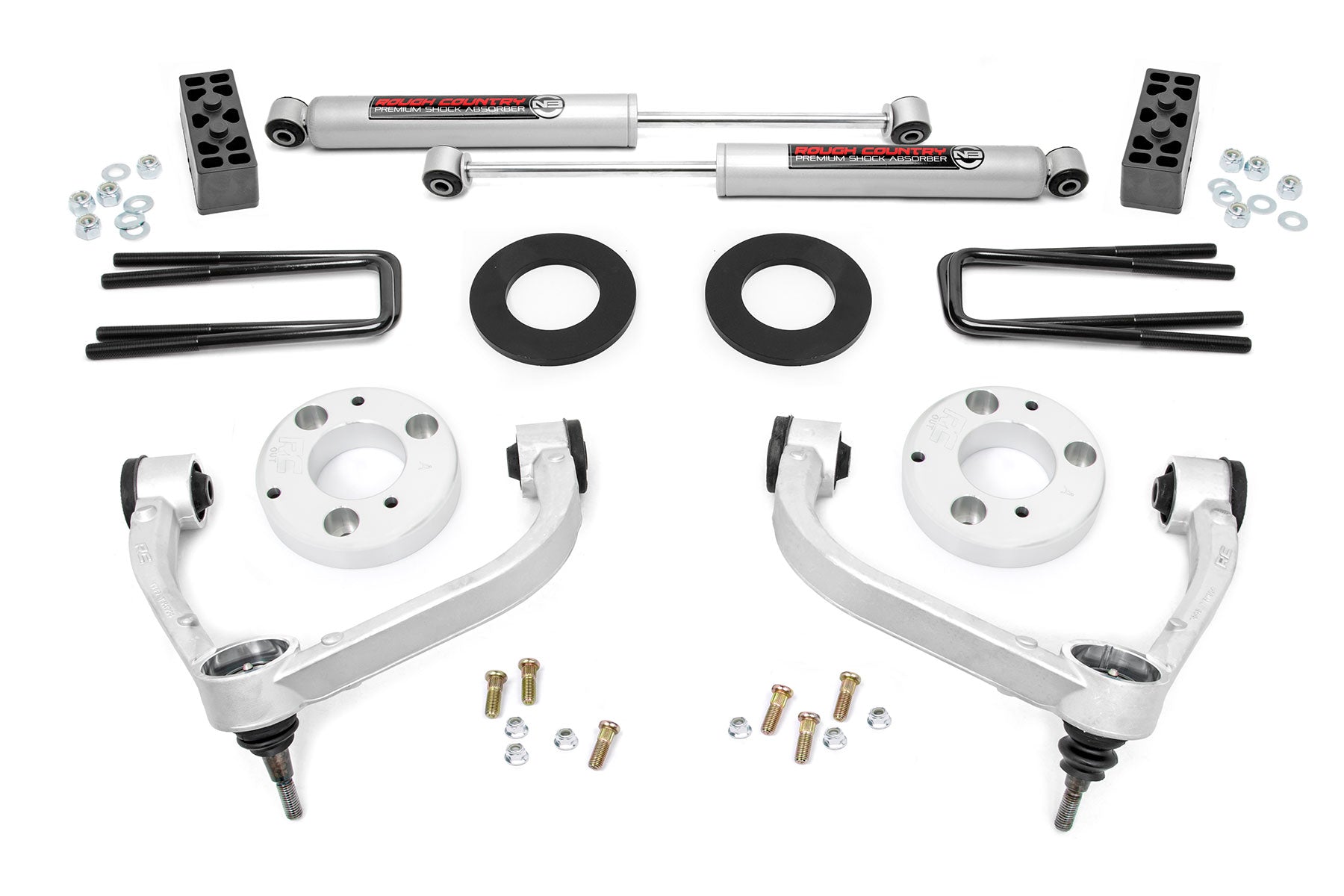 Rough Country’s 3-inch Bolt-On Kit features N3 Nitrogen-charged shocks, giving your truck incredible ride-quality both on and off-road. Also included are a set of durable lifted struts and fabricated rear blocks to provide lift height from front to rear. Once installed, this kit gives your truck plenty of ride height for up to 34in tires while offering a clean, level look from front to rear. Retain your stock wheels with this kit when you use Rough Country’s 0.25-inch wheel spacer.