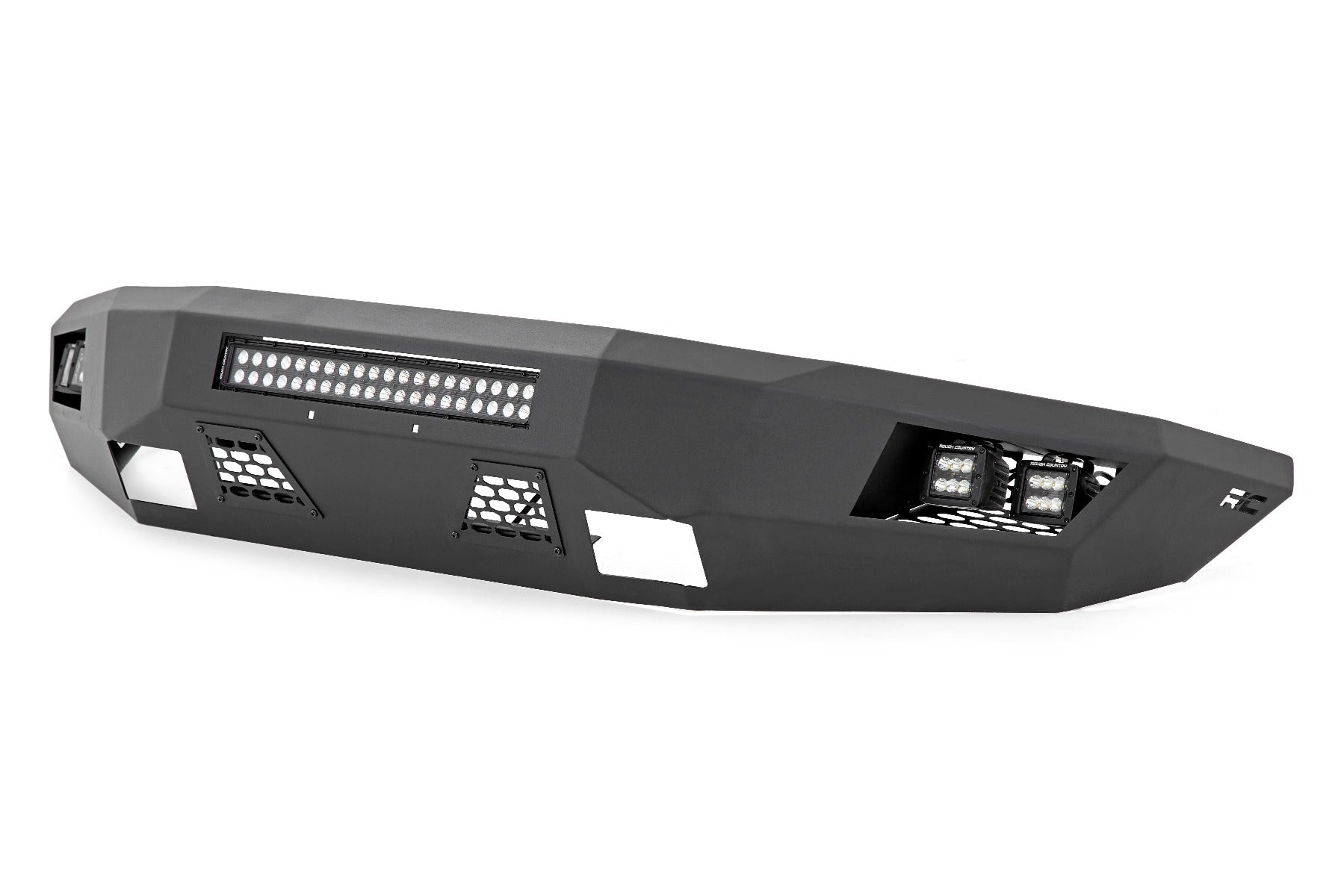 Rough Country’s Front LED Bumper is made of a durable, all-steel construction that’s ready to handle whatever you dish out. Each bumper features four Rough Country Black-Series 2in LED Cubes and a 20in LED Light Bar that offer over 15,000 lumens of combined lighting power.