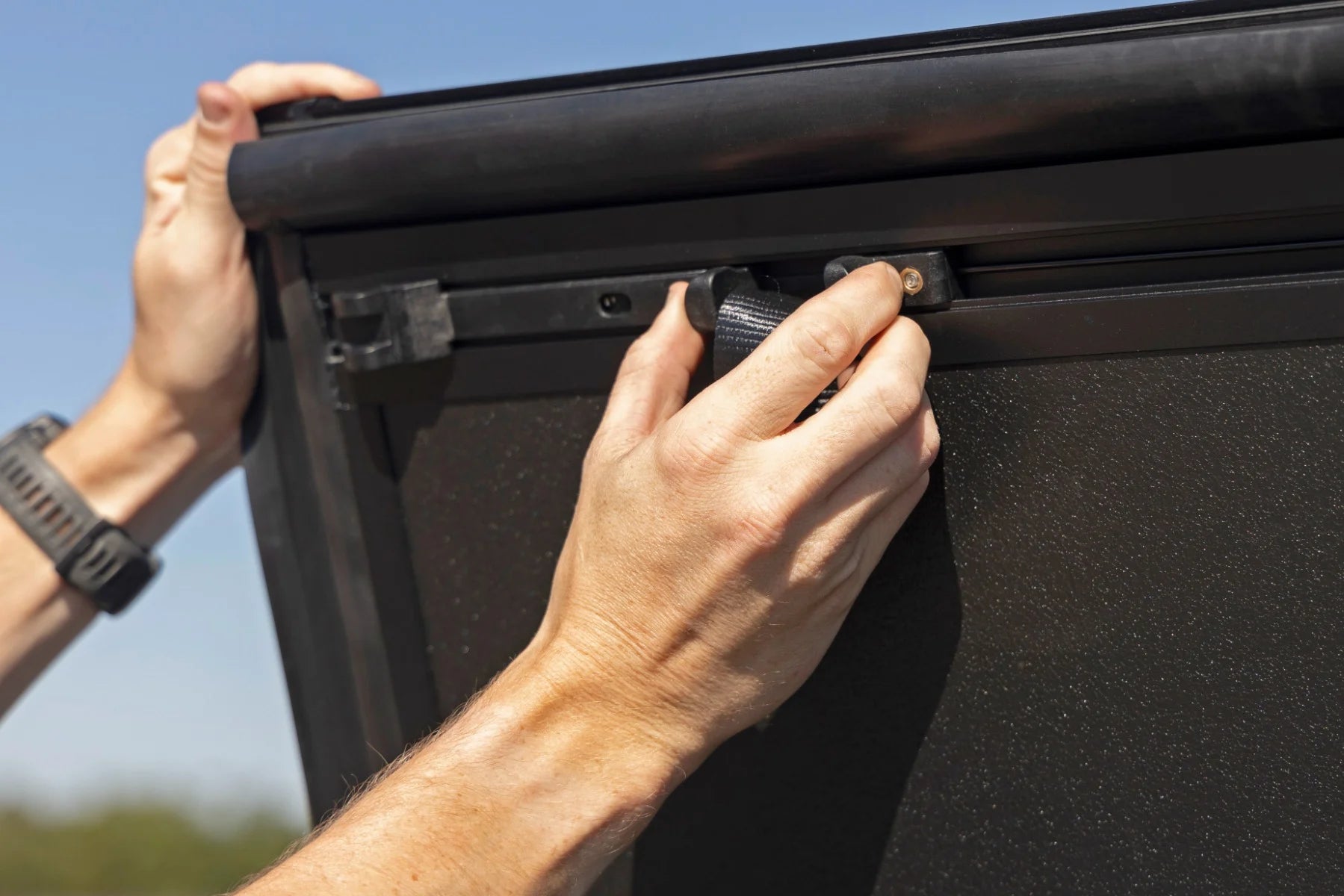 Built to Last: Our bed cover is crafted from lightweight aluminum and boasts a resilient powder coat finish. This coating resists corrosion and wear, ensuring that your truck bed maintains its pristine appearance even in harsh weather conditions.