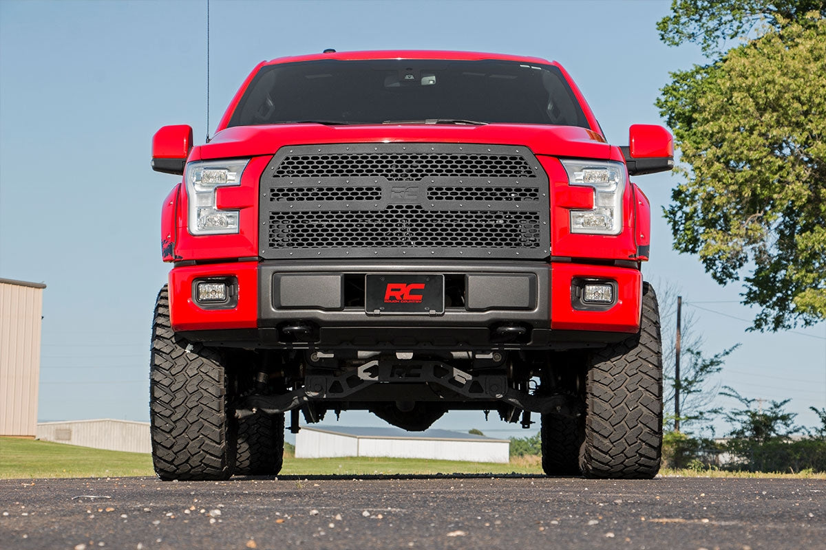 Give the front-end of your Ford F-150 a unique look with Rough Country’s Mesh Grille kit! This easy to install grille replacement kit swaps out your stock grille with the eye-catching, head-turning good looks of this aftermarket upgrade. With a unique, laser-cut mesh pattern surrounded by stylish, stainless steel rivets, this grill gives your truck a more menacing look that’s sure to draw attention.
