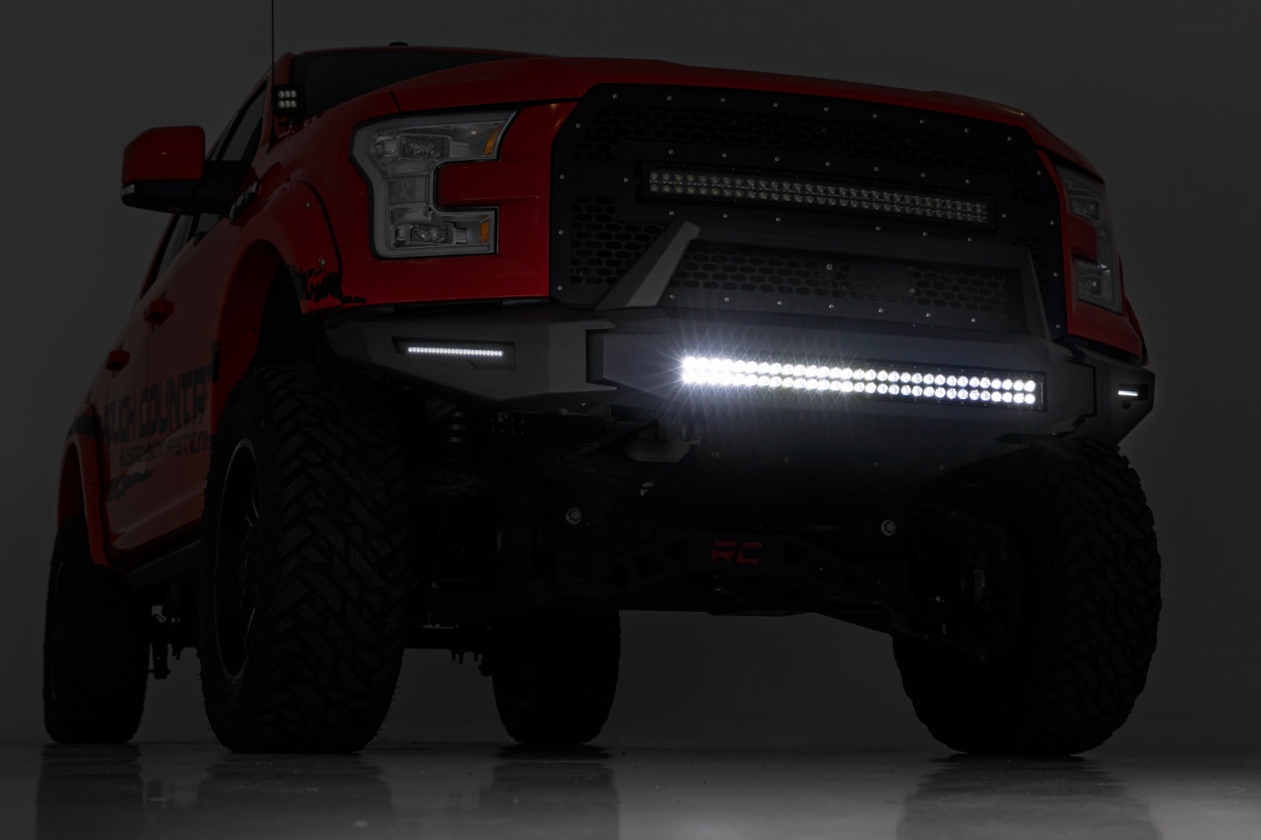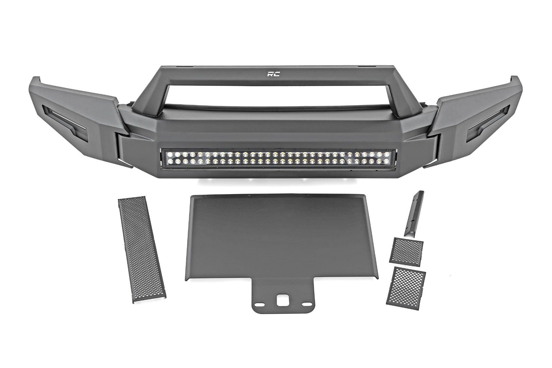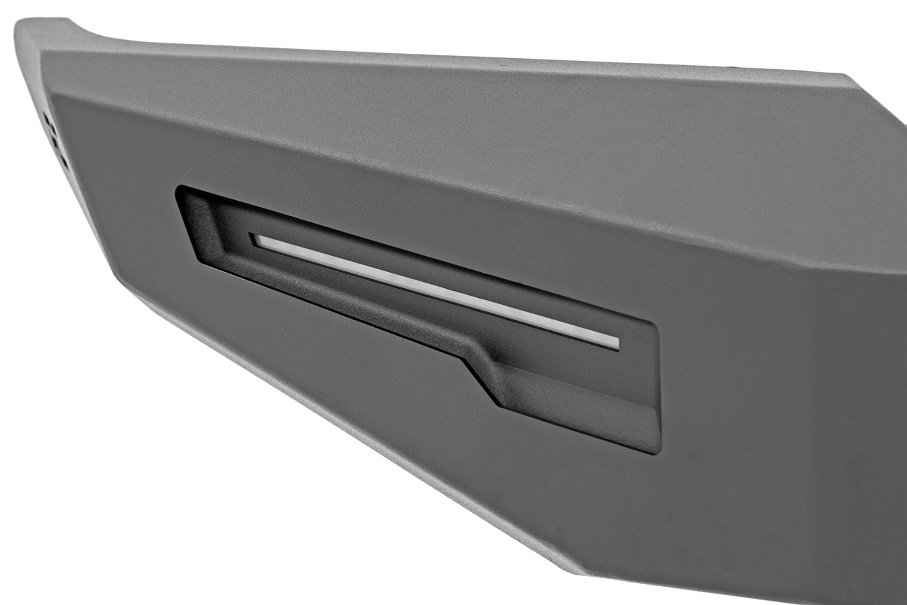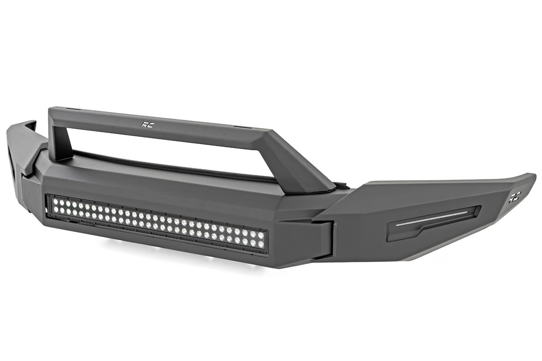 Innovative Design and Stylish Appearance! Give your front-end a unique look with Rough Country's LED Front Bumper. These durable bumper kits offer a sleek design that follows the factory features that is sure to turn heads. Each bumper boasts bold illumination and high approach angles that allow you to tackle the trails ahead.