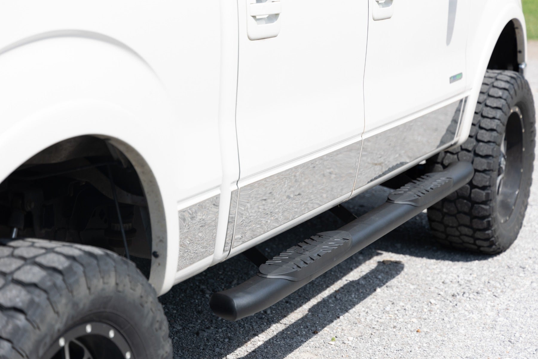 Step up your game. Give your Ford F-150 the perfect finishing touch with Rough Country's Oval Nerf Step Bars. They feature non-slip foot pads for secure footing with a classic OEM design that looks great on any F-150, including lifted models. These truck bed bars are designed for both form and function with a curved and stylish look.