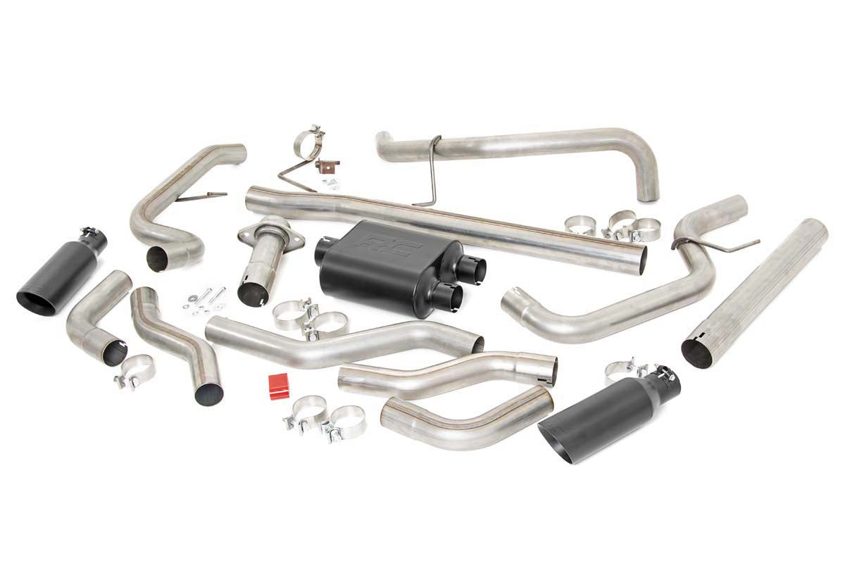 Give your truck an aggressive, throaty growl and killer good looks with Rough Country’s Dual Cat-Back Exhaust System for Ford F-150. These durable exhaust systems are fine tuned to improve air flow and deliver and the perfect aftermarket exhaust note that will put a smile on your face every time you hit the gas.